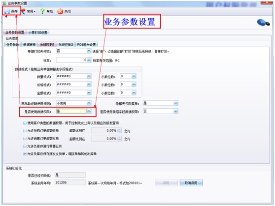 【e商后台】——【系统管理】——【业务参数设置】——【系统控制1】——【选择启动数据权限】——【保存】