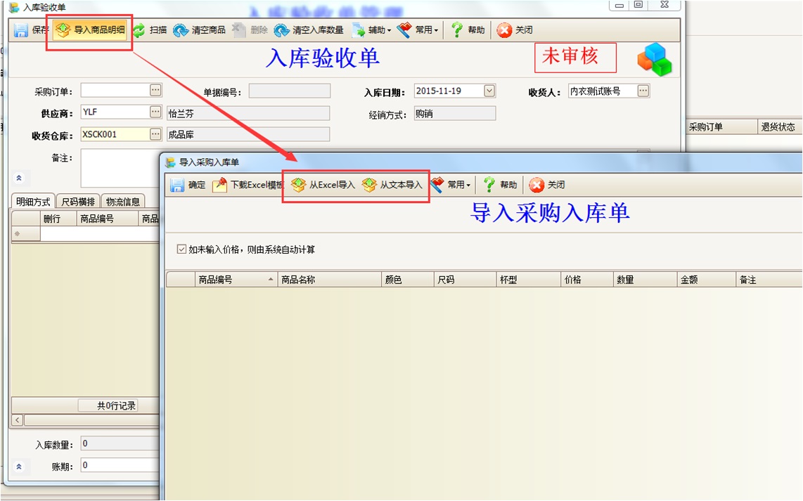 模板或盘点机导入: