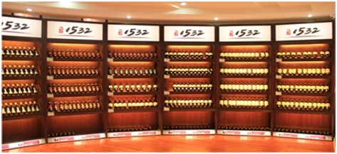 红酒以产区和品牌进行划分和陈列,名庄酒须保存或展示在恒温柜中,以保证其保存温度和湿度,保持其品质。