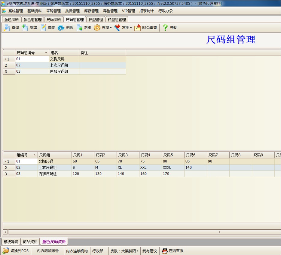 1、内衣颜色、尺码、杯型属性资料的建立
